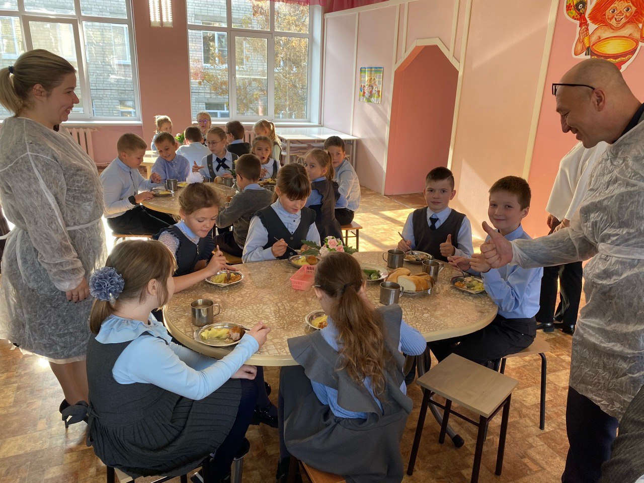 Родители понаблюдали, как дети входят в зал, как рассаживаются за столы, как ведут себя во время приема пищи. Классные руководители сопровождают детей в столовую, следят за поведением в обеденном зале, организовано дежурство учителей по столовой.